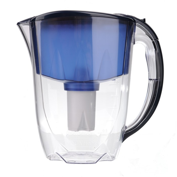 Кувшин выполнен из пищевого пластика, безопасного для контакта с питьевой водой. Эргономичная форма позволяет удобно держать кувшин одной рукой и наливать воду. Крышка плотно прилегает, защищая воду от пыли. Сменный фильтрующий модуль устанавливается без инструментов — достаточно вставить картридж в воронку.