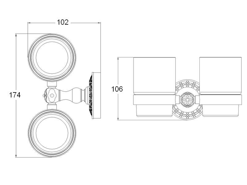Держатель крепится к стене, освобождая место на раковине. Два стакана располагаются рядом, обеспечивая быстрый доступ к принадлежностям. Настенный монтаж защищает стаканы от случайного опрокидывания и упрощает уборку — достаточно протереть поверхность под держателем.