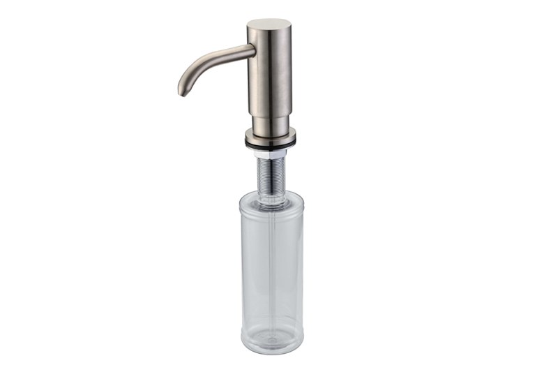 - Владельцам кухонь с врезной мойкой — дозатор монтируется в столешницу и освобождает рабочую поверхность от флаконов