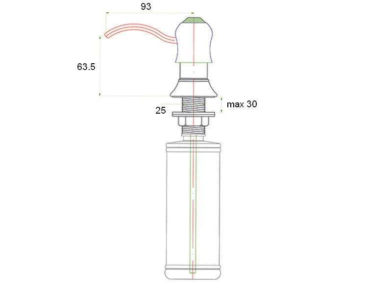 - Владельцам кухонь с врезными мойками — дозатор монтируется в дополнительное отверстие столешницы
