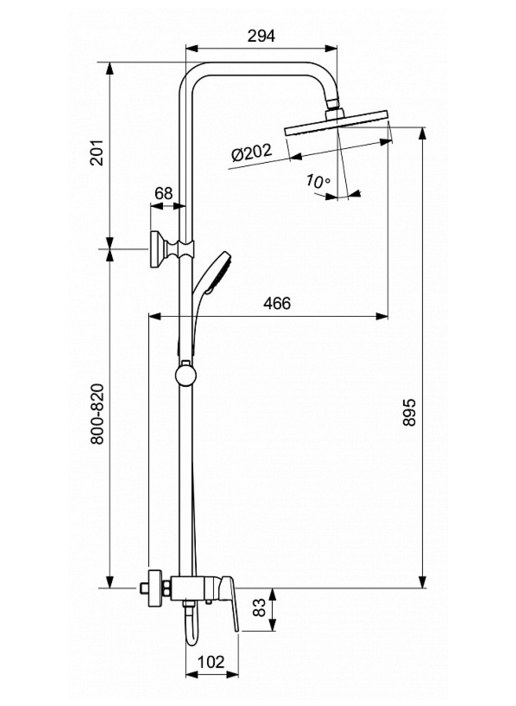Регулируемая по высоте штанга — позволяет настроить положение лейки под рост каждого члена семьи