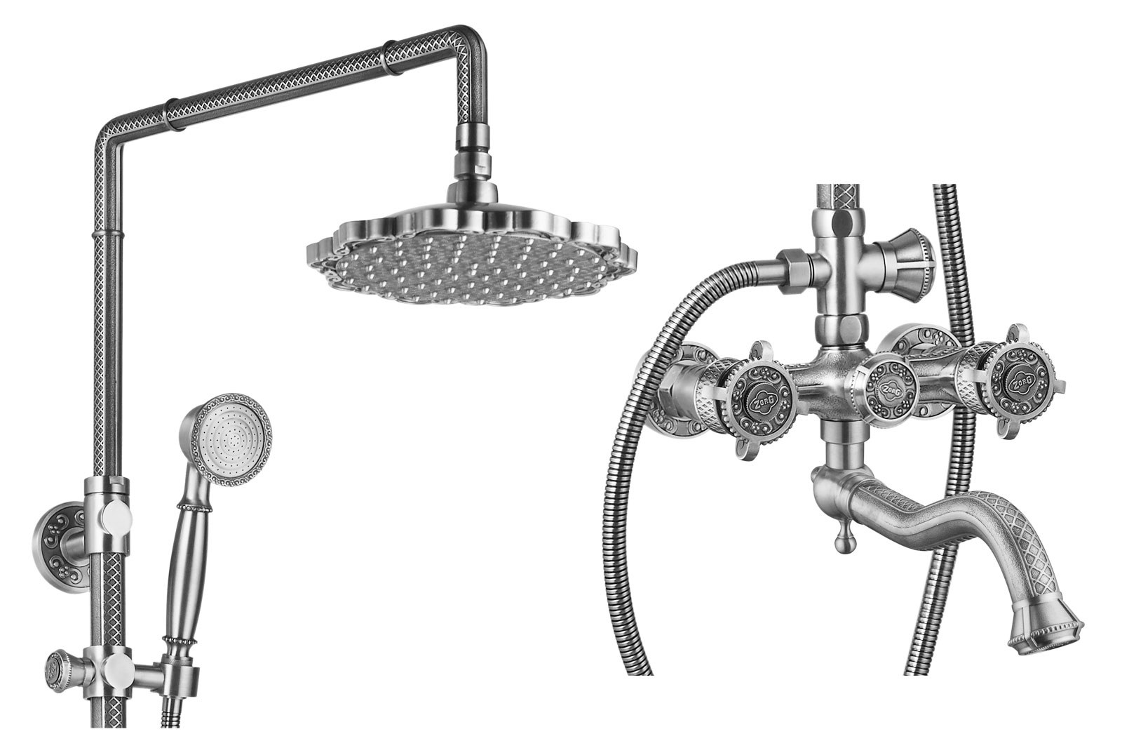 Стойка выполнена в цвете SL (серебристый), что позволяет сочетать её с хромированными смесителями и аксессуарами. Конструкция включает штангу с креплениями и держатель для душевой лейки. Производитель ZorG входит в число европейских брендов сантехники и предоставляет гарантию до 25 лет на свою продукцию.