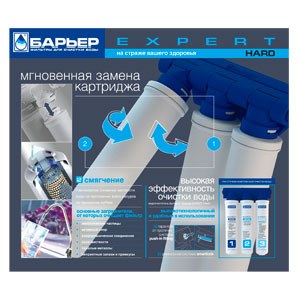 Фильтр Барьер EXPERT HARD — трёхступенчатая система под мойку для умягчения жёсткой воды в квартире или доме. Эффективно удаляет накипь и хлор, сохраняя полезные минералы, что защищает технику и улучшает вкус напитков без кипячения.
