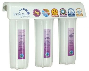 Гейзер Трио 3К Люкс — проточный фильтр для кухни с тремя ступенями очистки. Устанавливается под мойку и подключается к холодному водопроводу. На столешницу выводится отдельный кран для питьевой воды. Картриджи последовательно удаляют механические примеси, активный хлор, органические соединения и соли жёсткости.