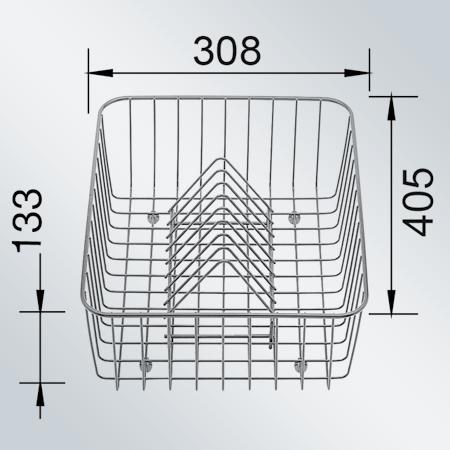 Корзина для посуды Blanco из прочной нержавеющей стали идеально подходит для моек этого бренда: надежные держатели фиксируют её на борту, а перфорированное дно обеспечивает быстрый слив воды при сушке овощей и посуды.