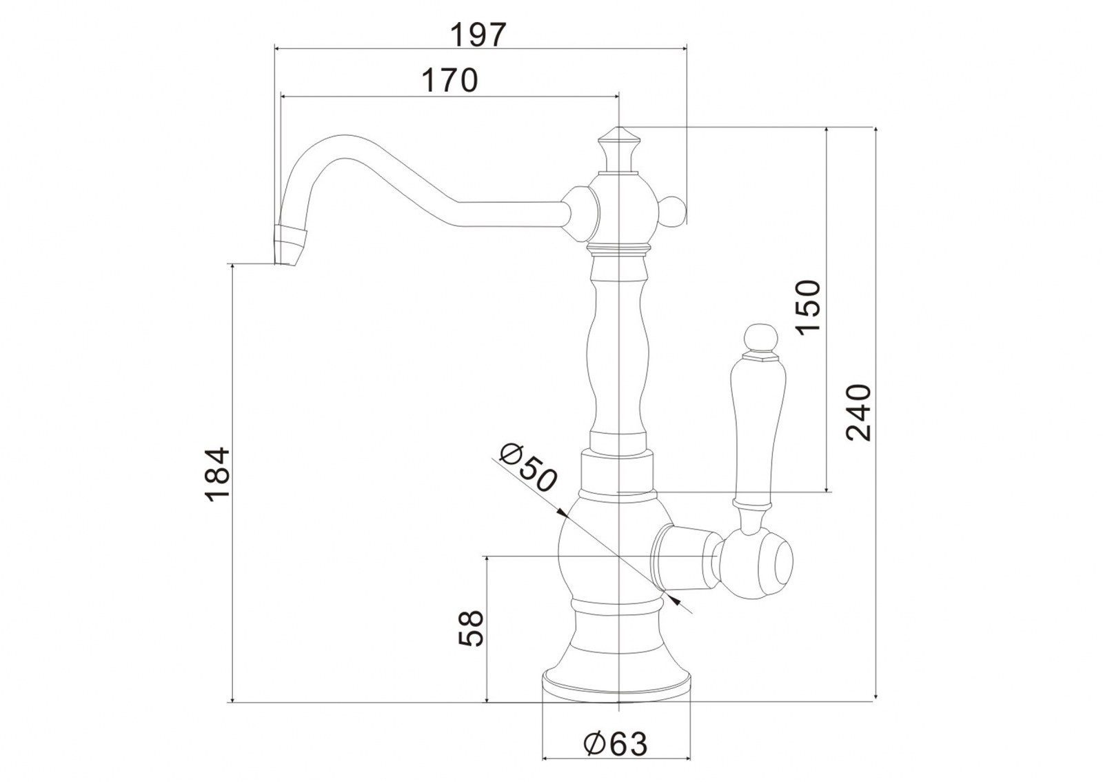 Кран предназначен исключительно для подачи очищенной питьевой воды из фильтра обратного осмоса или проточной системы очистки. Устанавливается отдельно от основного смесителя — на столешницу или мойку через стандартное монтажное отверстие. Бронзовое покрытие позволяет сочетать кран с классическими и ретро-интерьерами кухни, а также с другой сантехникой в аналогичной цветовой гамме.