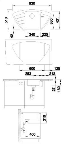 Кухонная мойка Blanco Zia 9E кофе — угловая модель для просторных столешниц