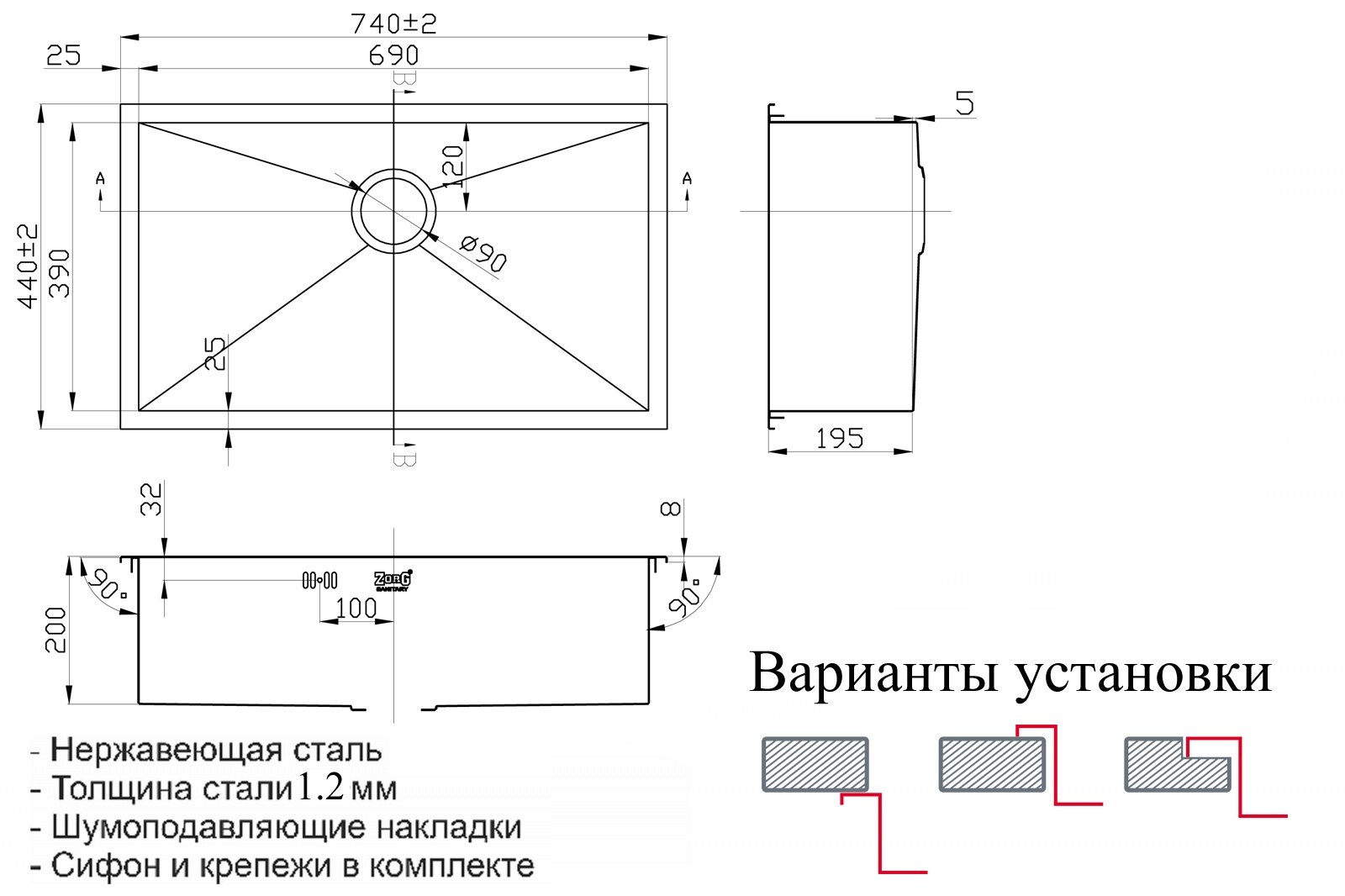 Купить кухонная мойка zorg x 7444 в интернет-магазине сантехники «Мойдодыр». Мы предлагаем только качественную продукцию от проверенных производителей с гарантией и доставкой по всей России.
