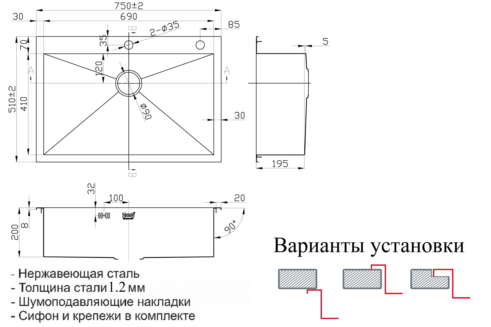 Кухонная мойка ZorG X 7551 — практичное решение для современной кухни
