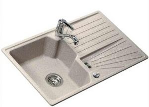 Выбирали мойку под бежевую столешницу — оттенок совпал идеально, смотрится как единое целое. Поверхность гладкая, грязь не въедается, достаточно протереть губкой после мытья посуды.