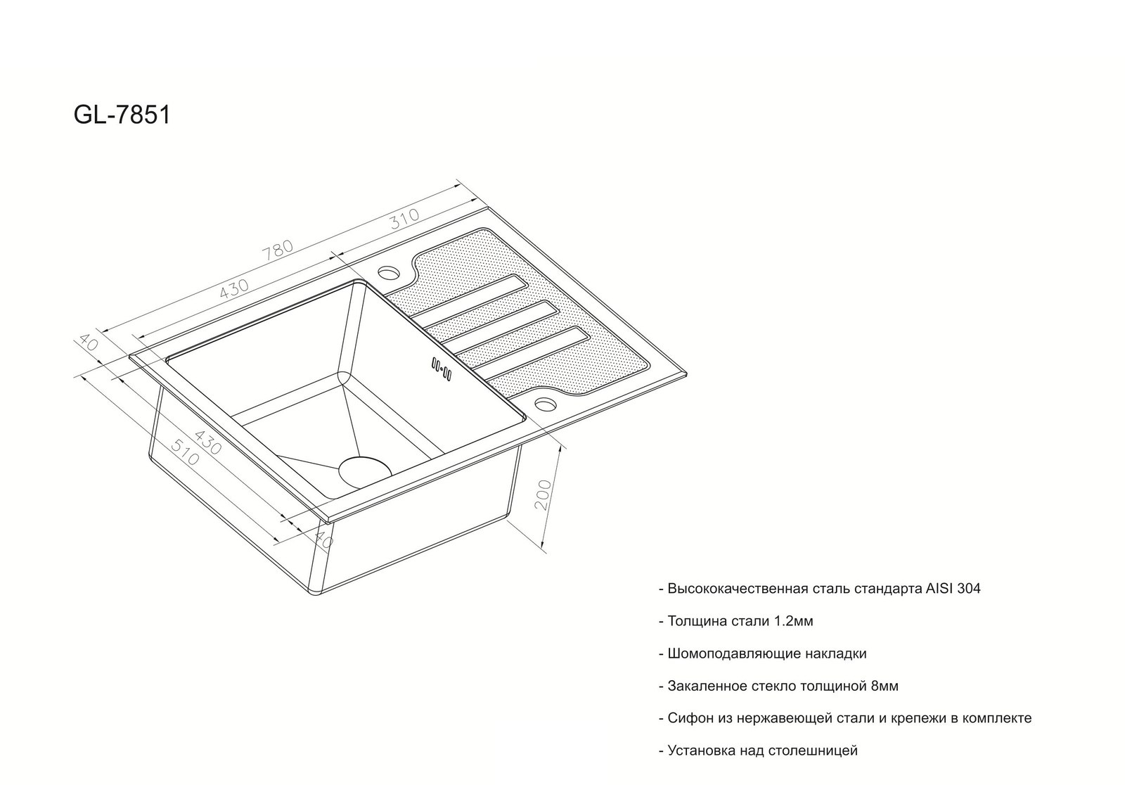Мойка ZorG INOX GLASS GL-7851 BLACK — купить в интернет-магазине Мойдодыр