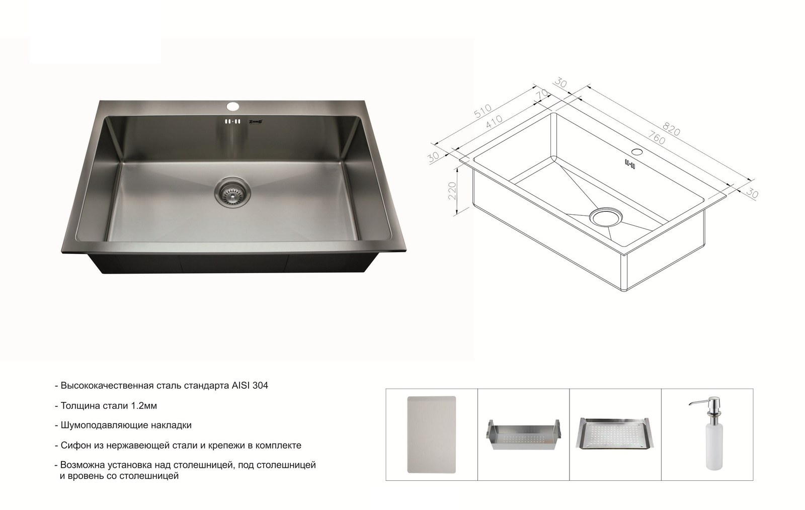 Мойка ZorG INOX RX-8251 — врезная кухонная мойка из нержавеющей стали