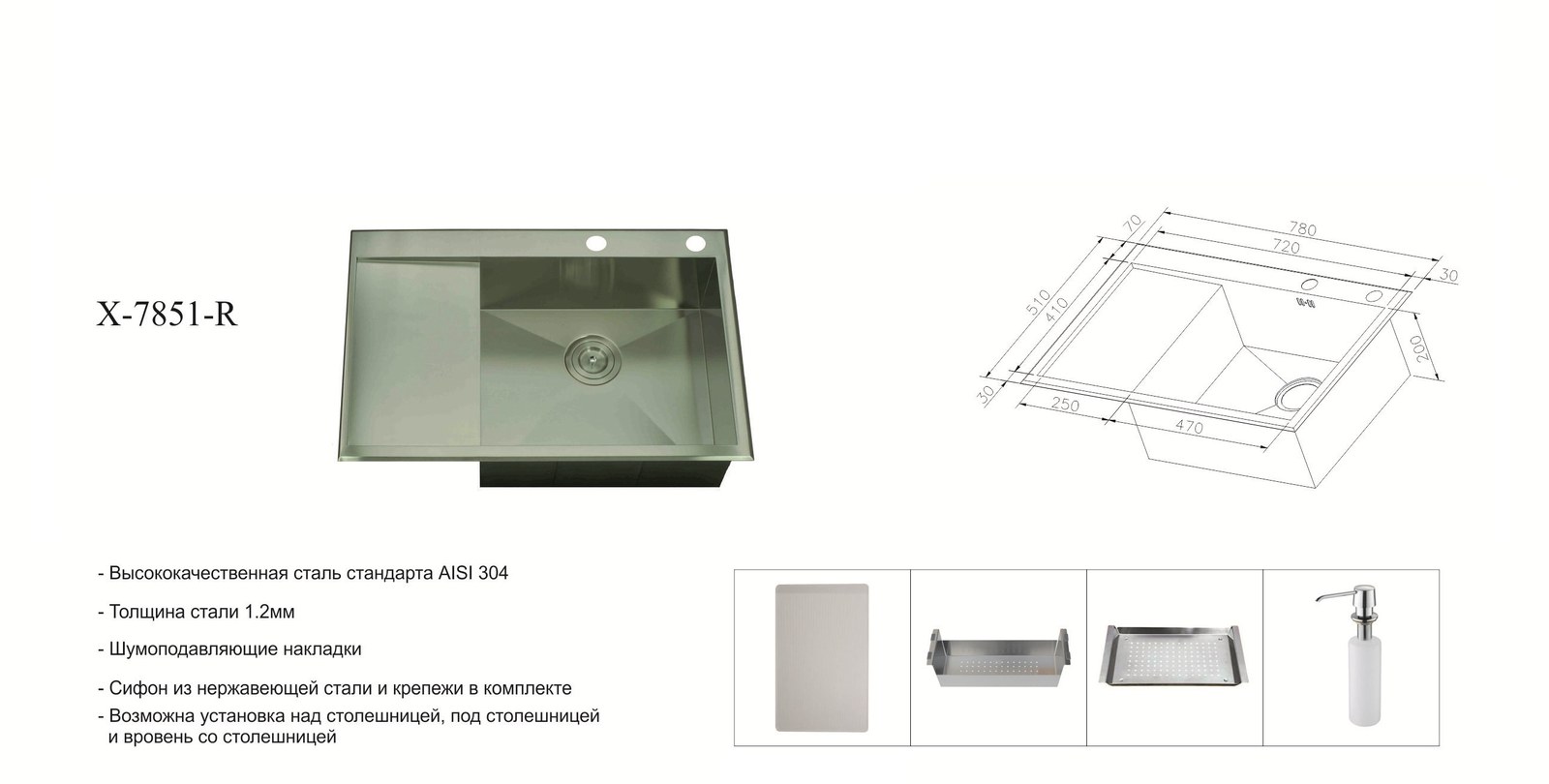 Мойка ZorG INOX X-7851-R — купить в интернет-магазине Мойдодыр
