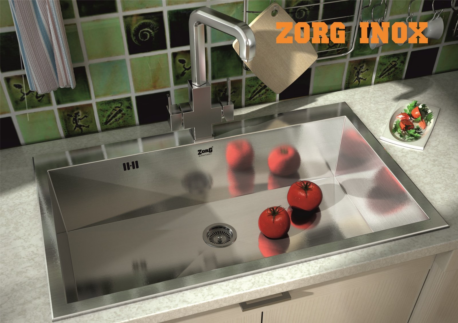 Врезная кухонная мойка ZorG INOX X-8251 из прочной нержавеющей стали идеально подходит для просторных столешниц благодаря глубокой чаше 82×51 см, которая комфортно вмещает крупную посуду и предотвращает разбрызгивание воды.