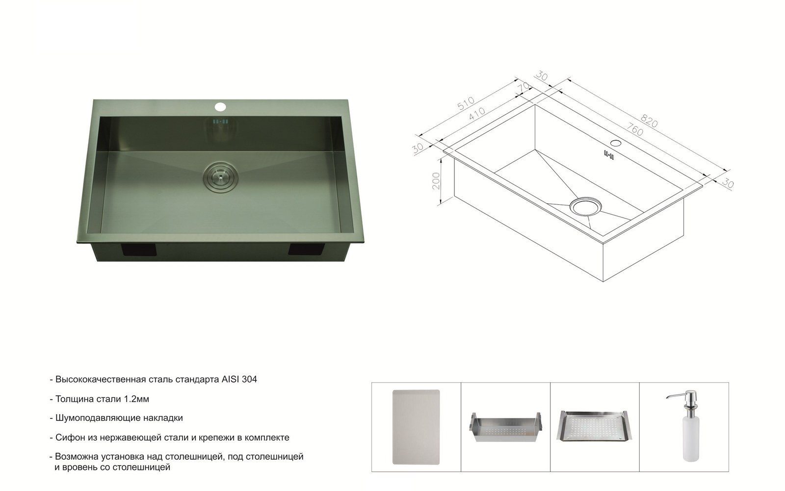 - Материал — нержавеющая сталь серии INOX, устойчивая к пищевым кислотам