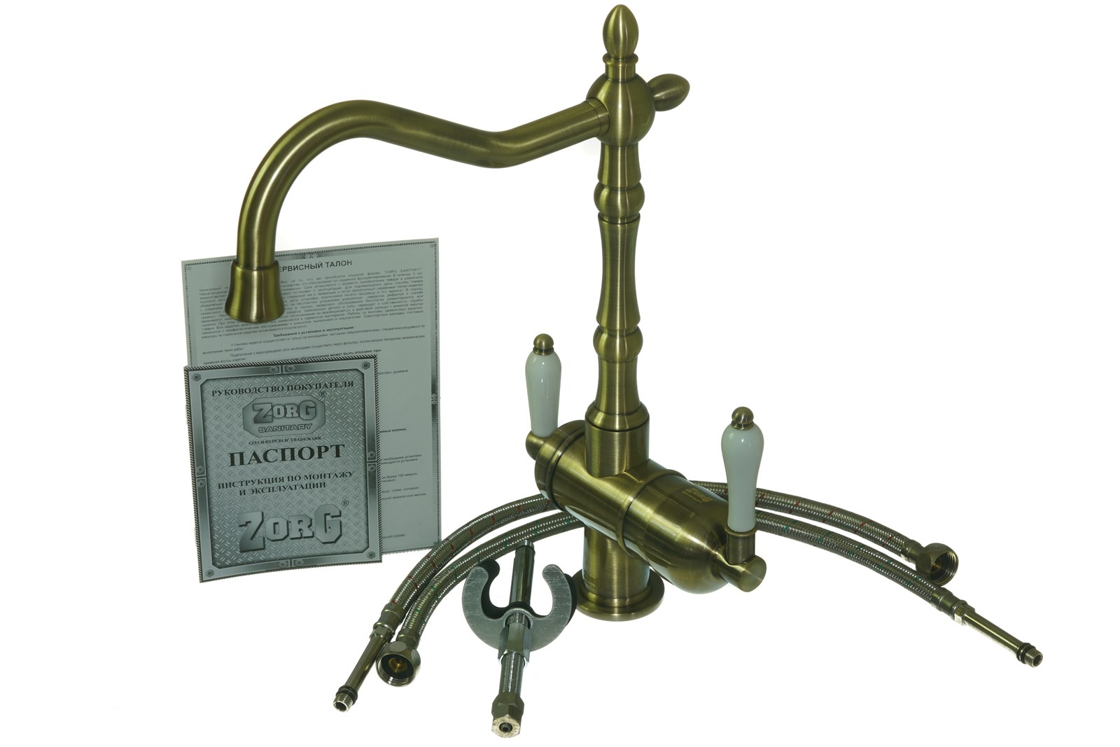 Смеситель 2 в 1 ZorG ZR 326 YF Bronze — функциональное решение для кухни
