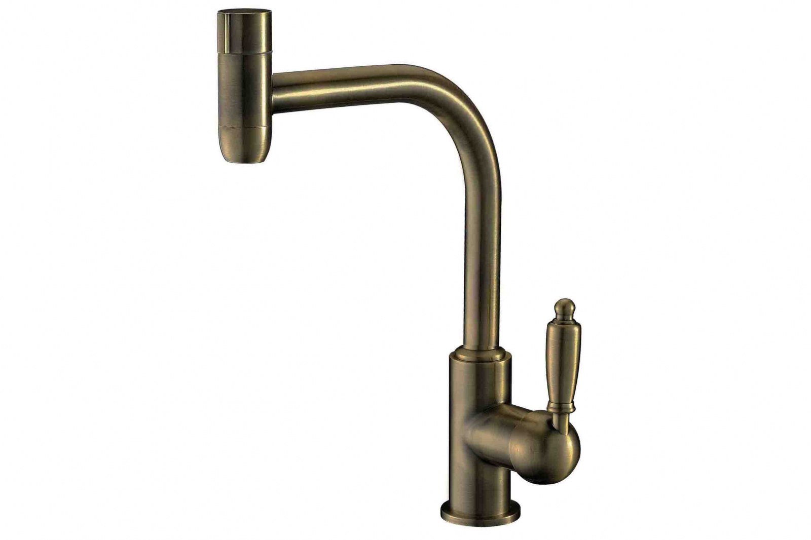 Уникальный кухонный смеситель 2 в 1 ZR 323 YF-33 ANTIQUE объединяет подачу обычной и фильтрованной воды из одного изящного излива в благородном бронзовом стиле, экономя место на мойке и идеально дополняя интерьеры классики или прованса.