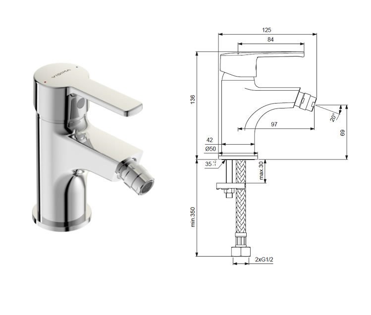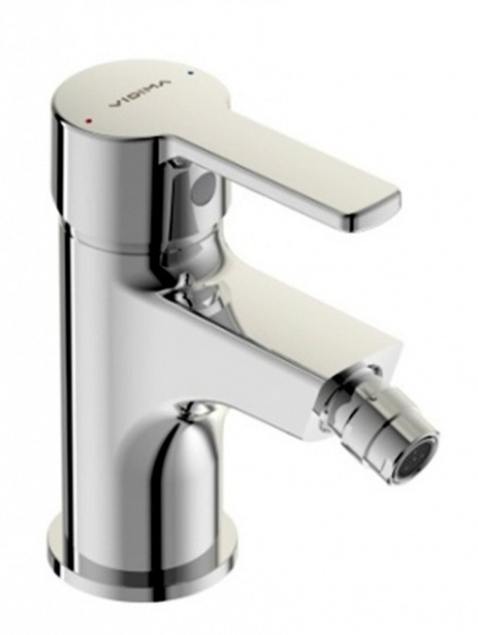 Однозахватный смеситель Vidima Uno для биде с коротким фиксированным изливом обеспечивает точную струю и комфортное управление одной рукой.