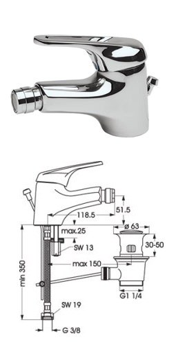 - Компактные размеры смесителя подходят для установки на биде стандартных габаритов