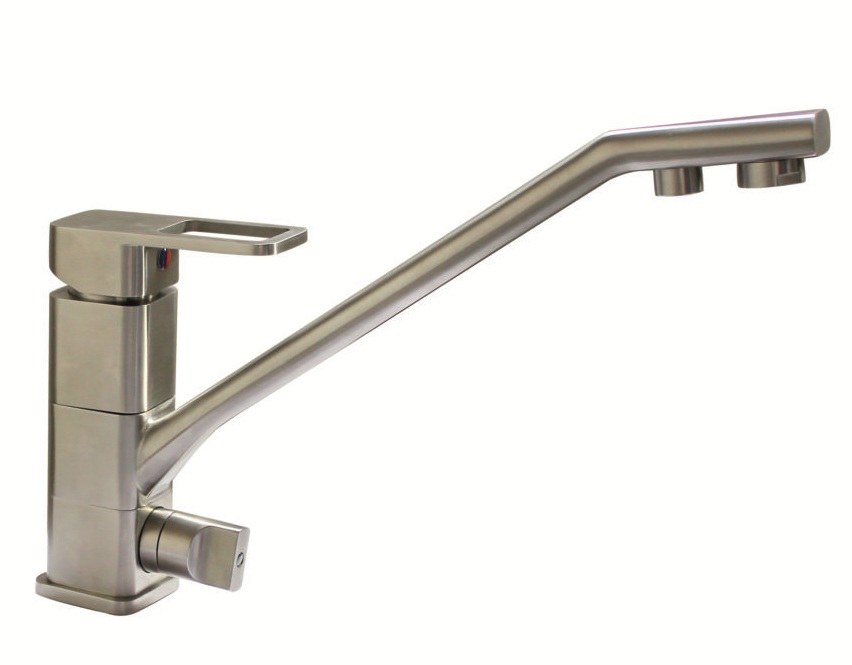 Смеситель предназначен для вывода очищенной воды из фильтра обратного осмоса или проточной системы фильтрации. Устанавливается на кухонную мойку рядом с основным смесителем. Компактный корпус из нержавеющей стали серии InoX не занимает много места и легко вписывается в современный интерьер кухни.