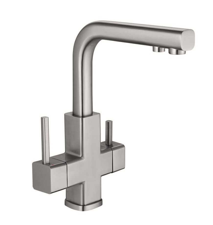 Смеситель для фильтра необходим тем, кто использует систему очистки воды под мойкой (обратный осмос, проточный фильтр). Модель DAMAS с лаконичным дизайном впишется в современный интерьер кухни. Нержавеющая сталь сочетается с мойками и смесителями аналогичной отделки.