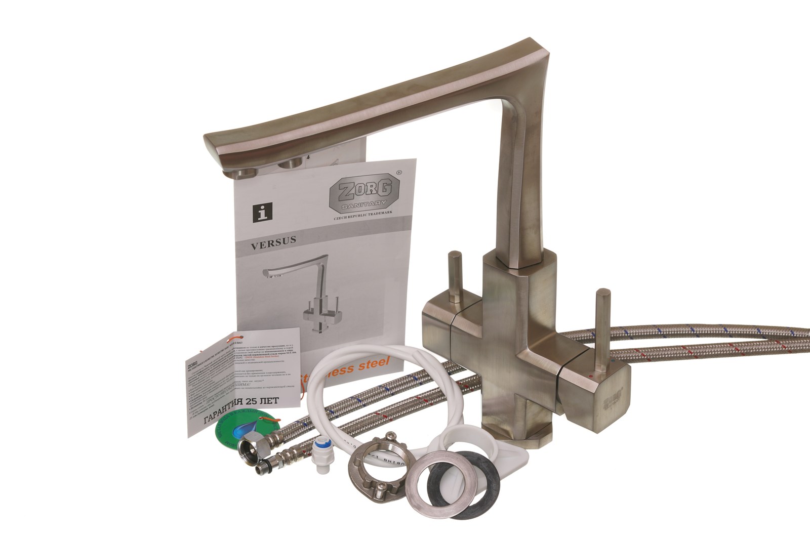 Смеситель ZorG INOX SZR-1127-7C VERSUS предназначен для подключения к системе фильтрации питьевой воды. Модель из серии VERSUS чешского бренда ZorG выполнена из нержавеющей стали — материала, устойчивого к коррозии и безопасного при контакте с питьевой водой.