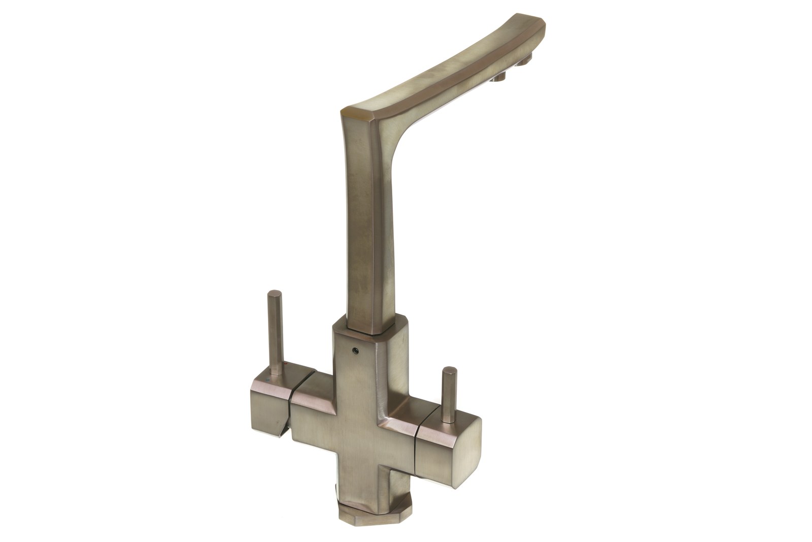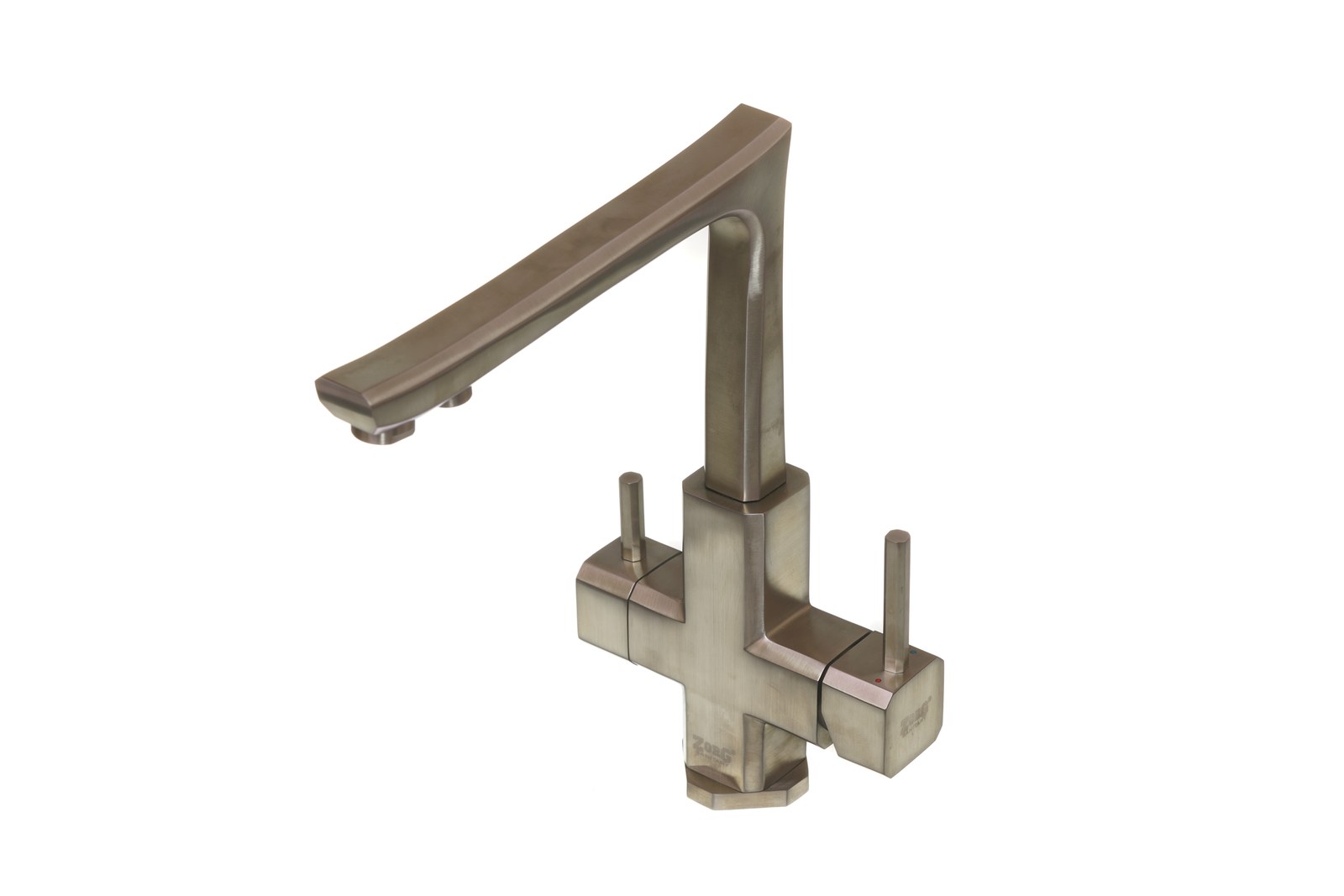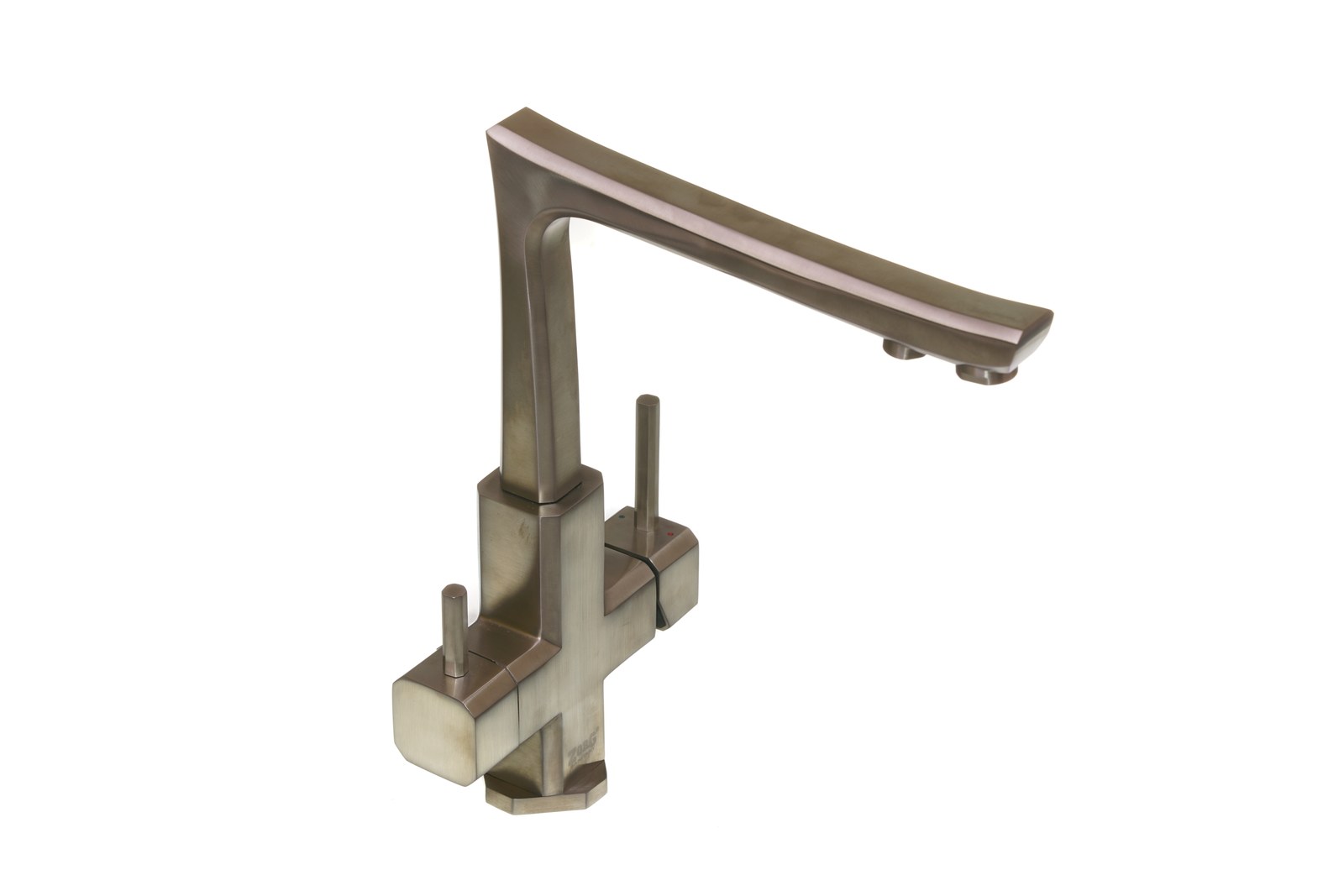 Смеситель станет удобным дополнением к кухонной мойке, если вы используете фильтр под раковиной. Отдельный кран для очищенной воды позволяет не смешивать питьевую воду с технической и продлевает срок службы фильтрующих картриджей. Компактная конструкция не занимает много места на столешнице и вписывается в современный интерьер кухни.