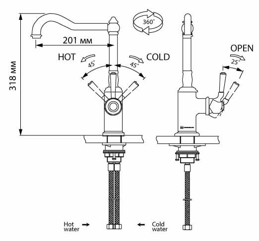 Смеситель станет удачным выбором для тех, кто ценит лаконичный дизайн и простоту в уходе. Хромированное покрытие устойчиво к появлению разводов и легко очищается мягкой тканью. Классическая форма излива впишется как в современный интерьер кухни, так и в более традиционную обстановку.