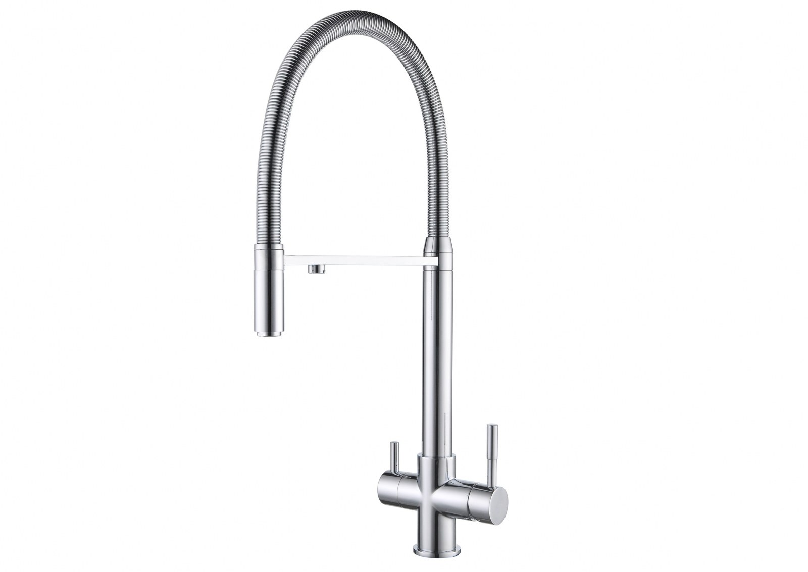 Смеситель ZorG ZR 337 YF объединяет подачу водопроводной и фильтрованной воды в одной компактной конструкции для экономии места на кухне.