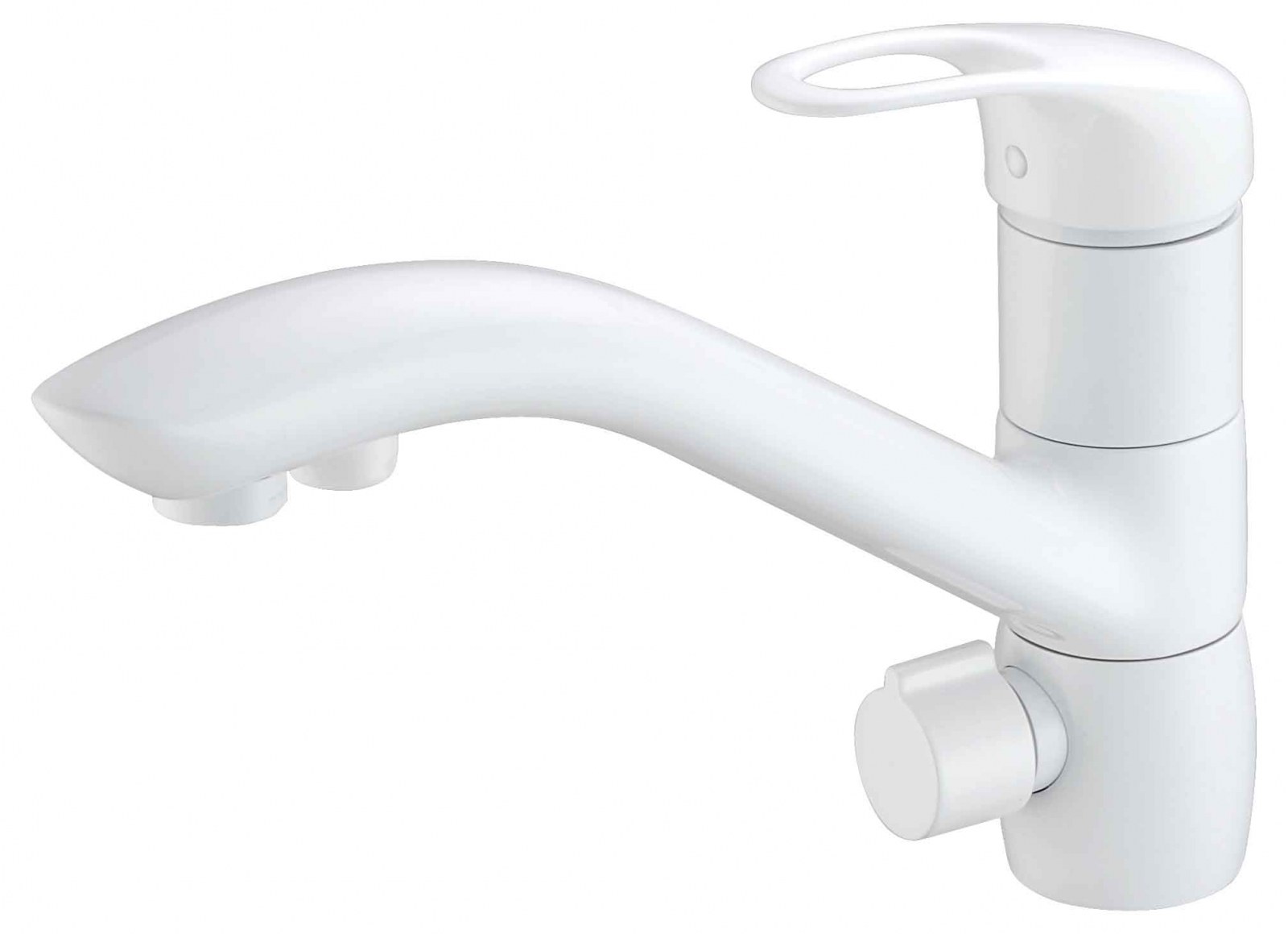 Кухонный смеситель ZorG ZR 404 KF в белом исполнении совмещает два канала подачи воды: основной для бытовых нужд и отдельный для питьевой воды из фильтра. Такая конструкция избавляет от необходимости устанавливать дополнительный кран на мойку — всё управление сосредоточено в одном корпусе.