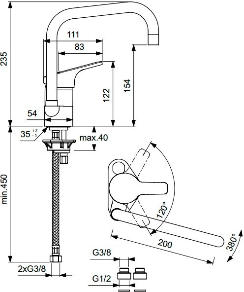 - Стандартное подключение упрощает монтаж и замену старого смесителя без переделки подводки