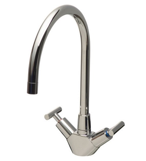 Практичный двухвентильный смеситель Vidima Сева Дуо с поворотным изливом обеспечивает точную регулировку воды и подходит для любых кухонных моек.