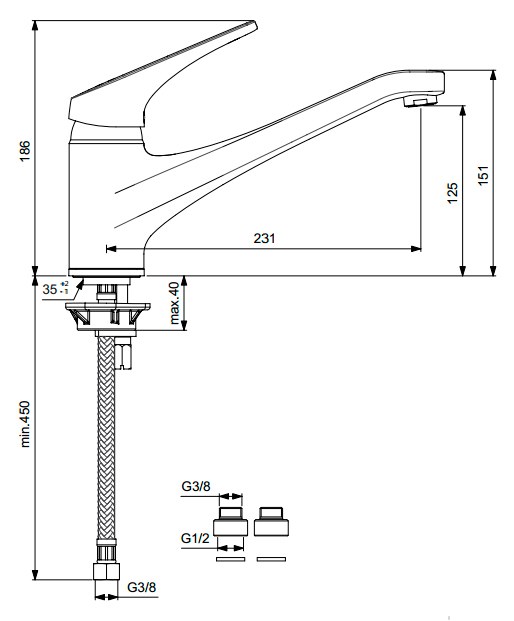- Стандартное подключение упрощает монтаж и замену старого смесителя без переделки подводки