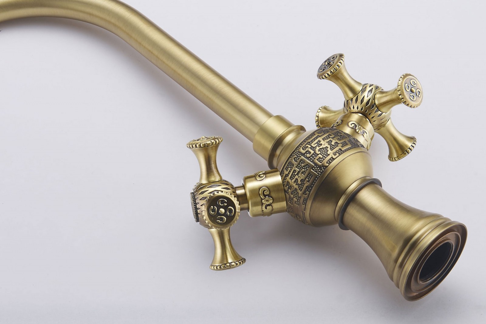 Владельцам кухонь с медной, бронзовой или латунной фурнитурой — смеситель поддержит единый стиль интерьера