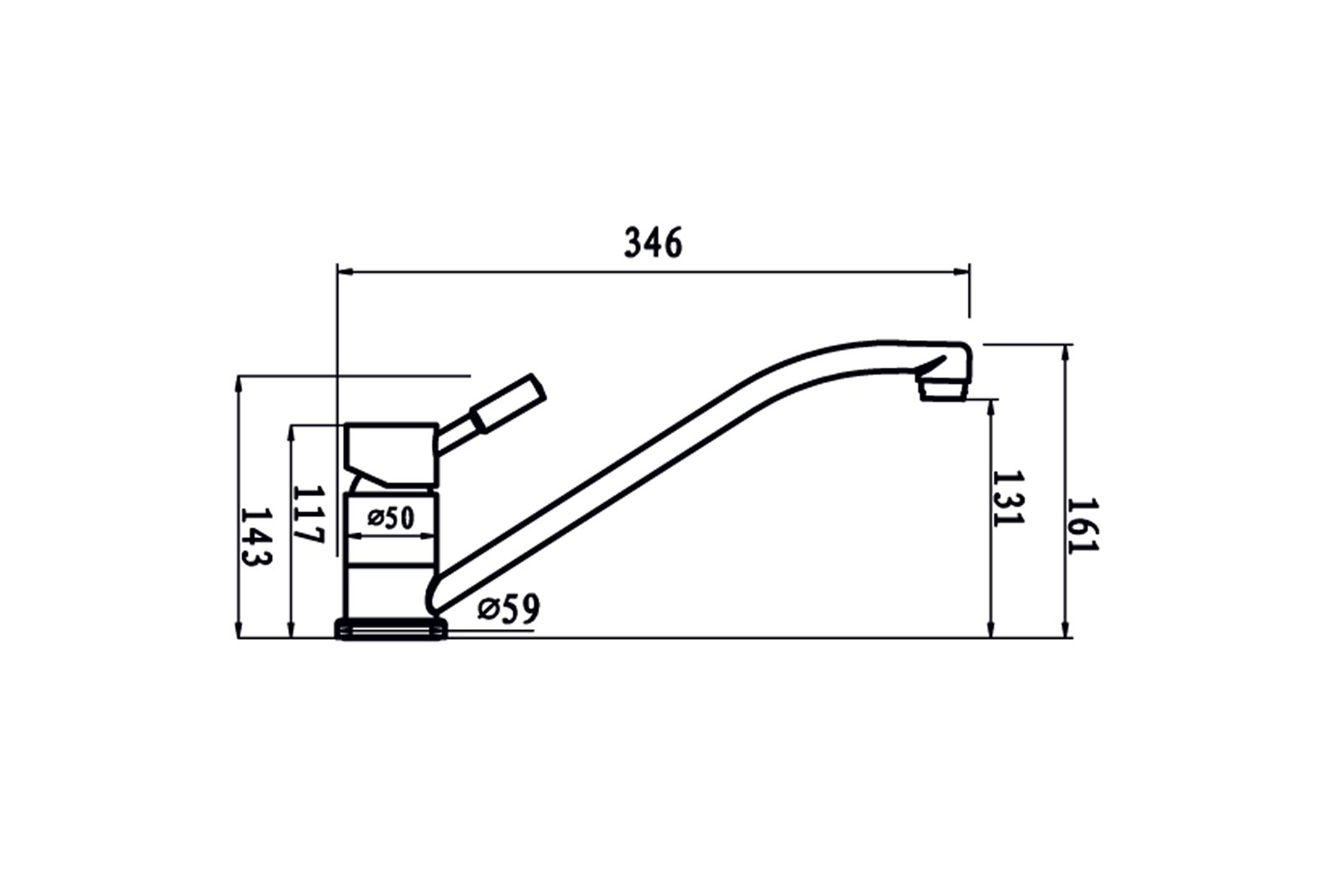 - Удлинённый поворотный излив типа «лебединая шея» — удобен для мытья крупной посуды и наполнения высоких ёмкостей