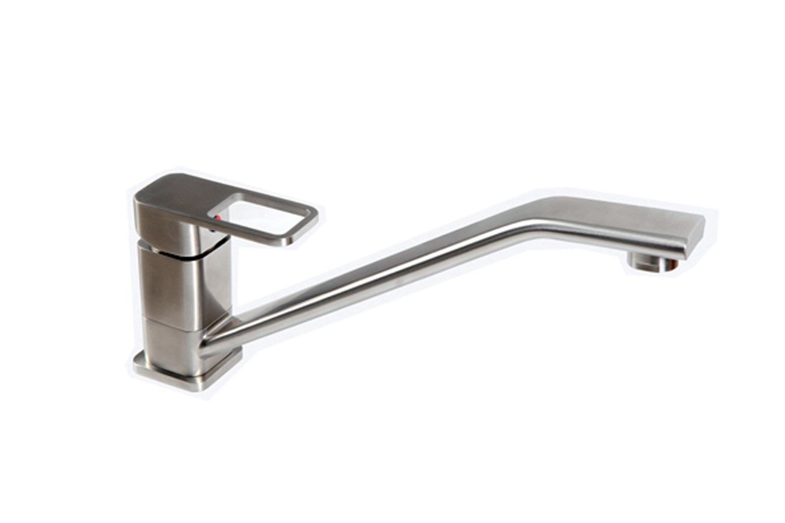 Смеситель рассчитан на стандартное крепление к столешнице или мойке. Подходит для кухонь с глубокими мойками, где важен большой радиус действия излива. Матовая поверхность нержавеющей стали хорошо сочетается с современными интерьерами в стиле лофт, минимализм или скандинавский.