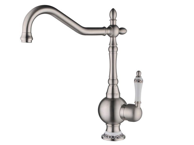 Кухонный смеситель ZorG ZR 360 Y NICKEL от чешского бренда отличается прочным латунным корпусом и практичным матовым никелевым покрытием, устойчивым к разводам.
