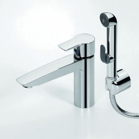 Модель станет удачным выбором для тех, кто хочет установить гигиенический душ, но не имеет возможности вывести отдельную точку подключения. Смеситель монтируется на раковину стандартным способом, а лейка с гибким шлангом позволяет использовать его для личной гигиены, уборки санузла или наполнения ёмкостей.