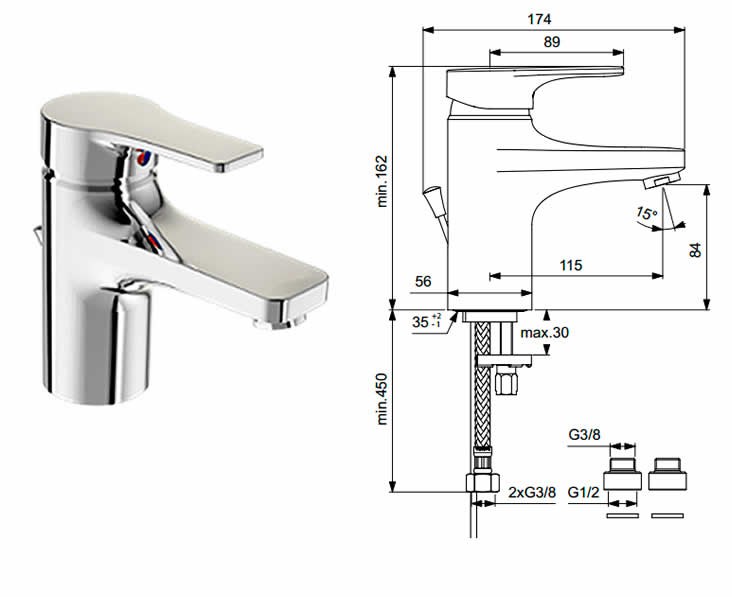 Смеситель для раковины СТРИМ VIDIMA без донного клапана
