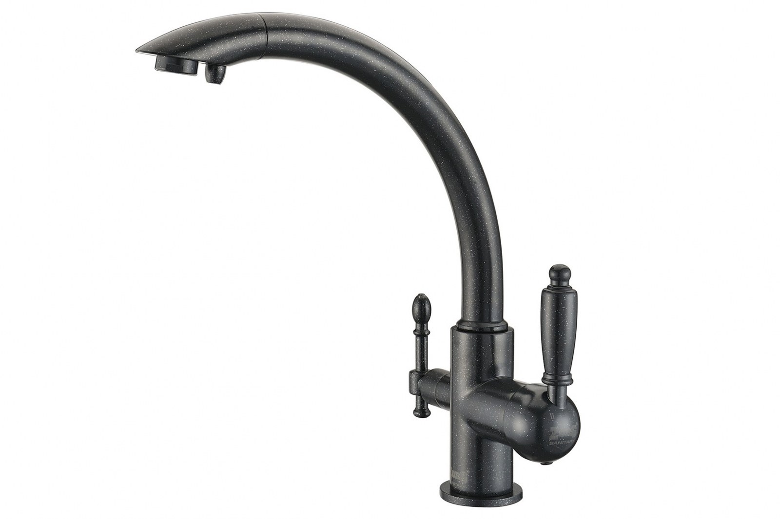 Кухонный смеситель ZorG ZR 314YF-33 в чёрном исполнении совмещает два канала подачи воды: обычный и для питьевой воды после фильтра. Это избавляет от необходимости устанавливать отдельный кран для фильтрованной воды и экономит место на мойке.