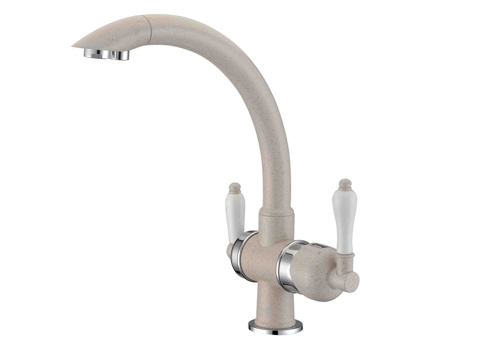 Кухонный смеситель ZorG ZR 327 YF в цвете хром-песочный совмещает два независимых канала подачи воды: один для обычной водопроводной, второй — для очищенной питьевой воды из встроенного фильтра. Такая конструкция избавляет от необходимости устанавливать отдельный кран для фильтрованной воды и экономит место на мойке.