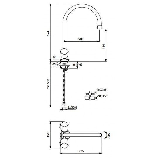 - Поворотный излив обеспечивает удобный доступ ко всей площади мойки