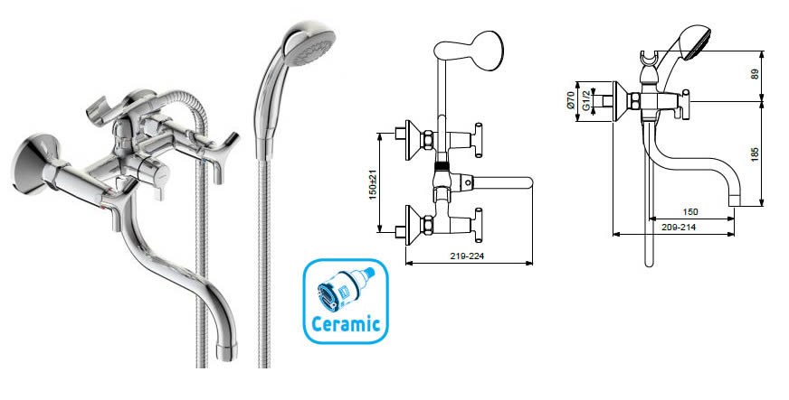 - Керамический картридж обеспечивает плавный ход рычага и защиту от протечек