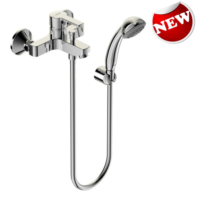 Практичный настенный смеситель Vidima УНО объединяет управление ванной и душем в одном корпусе с удобным однорычажным переключением.