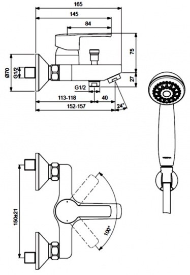 - Настенный монтаж со стандартным межосевым расстоянием — простая замена старого смесителя без переделки подводки
