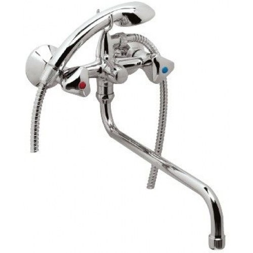 Практичный настенный смеситель Vidima Вит BA155AA для ванны с душем обеспечивает комфортную регулировку температуры и напора благодаря двум вентилям и удобному переключателю потока, идеально сочетая доступность, надежность и простоту монтажа.