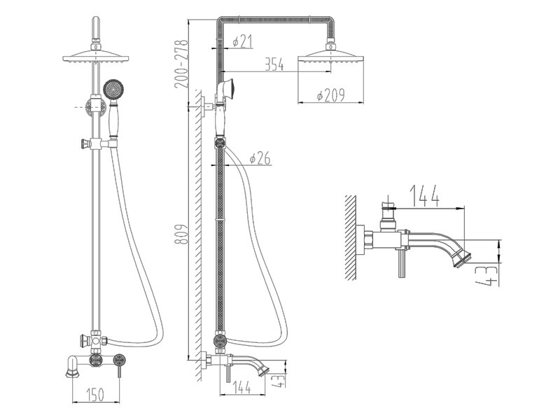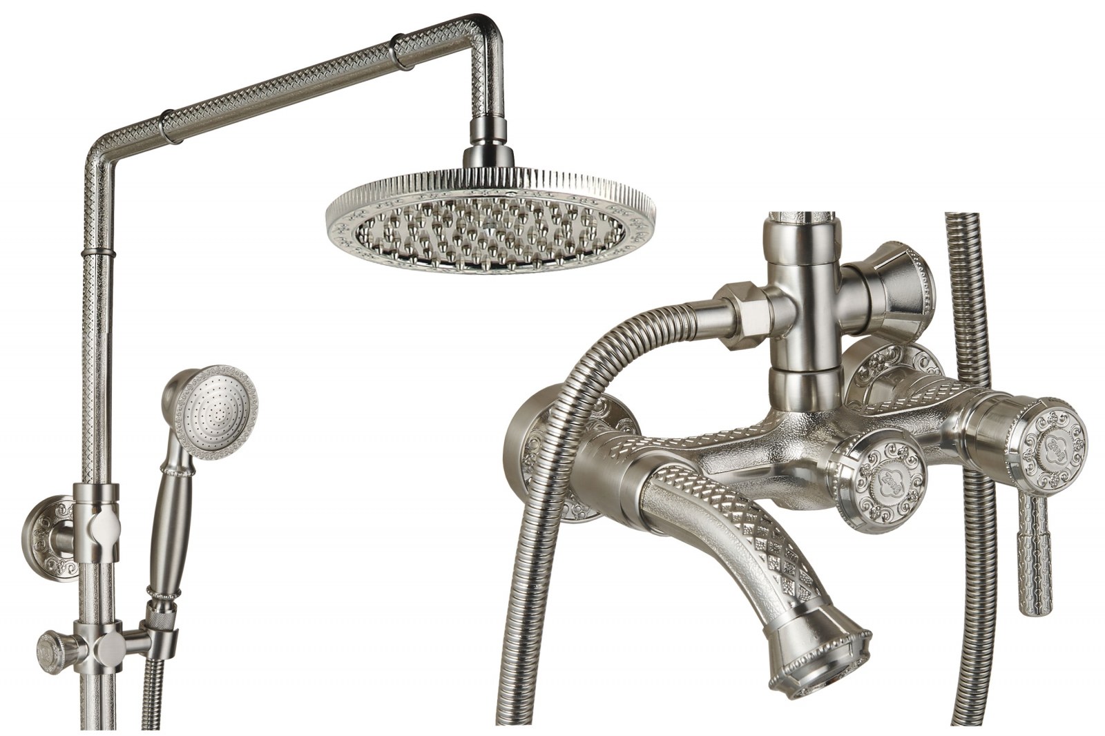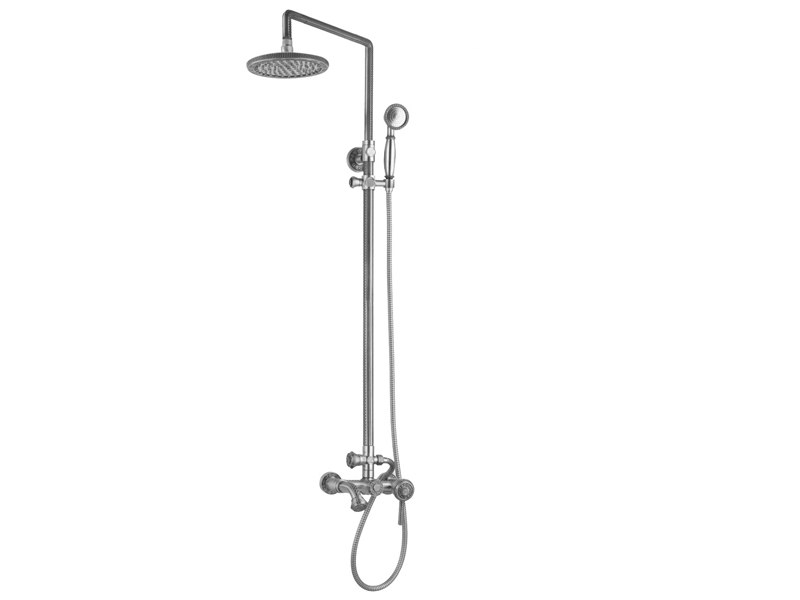 Душевая стойка ZorG Antic в ретро-стиле сочетает элегантный серебристый дизайн с функционалом: верхний тропический душ, удобная ручная лейка и регулировка высоты штанги для комфортного использования всей семьей.