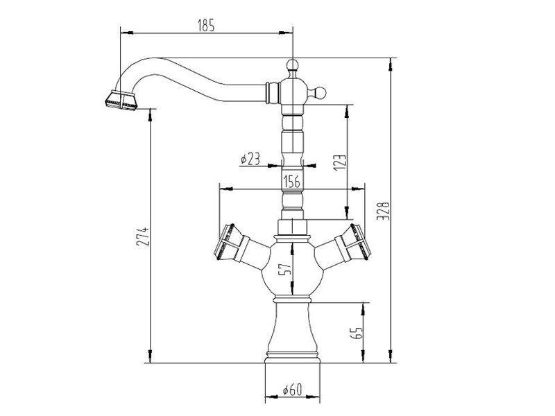 Смеситель станет удачным выбором для кухни в классическом или ретро-стиле. Подходит для установки на мойку с одним монтажным отверстием. Двухвентильная система позволяет точно настраивать температуру воды, что особенно удобно при мытье деликатной посуды.