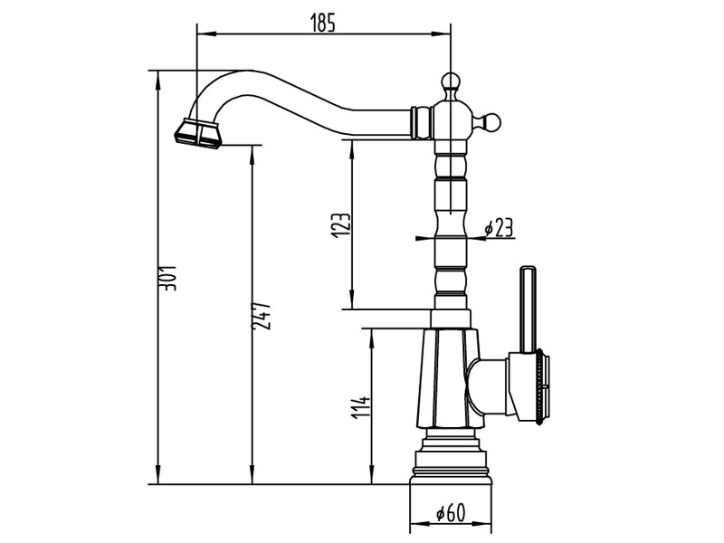 - Высокий изогнутый излив — удобен для наполнения высоких кастрюль и ваз