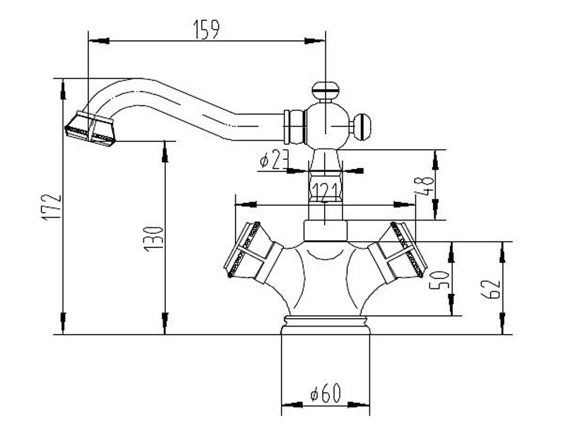- Двухвентильная конструкция — раздельная регулировка горячей и холодной воды, характерная для классического стиля